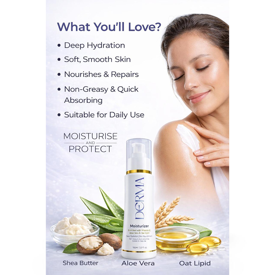 hydration and nourishment. Enriched with Shea Butter, Aloe Vera Juice, Oat Lipid E, and Vitamin E, it helps to restore softness, improve texture, and protect skin against dryness. Suitable for daily use on all skin types.